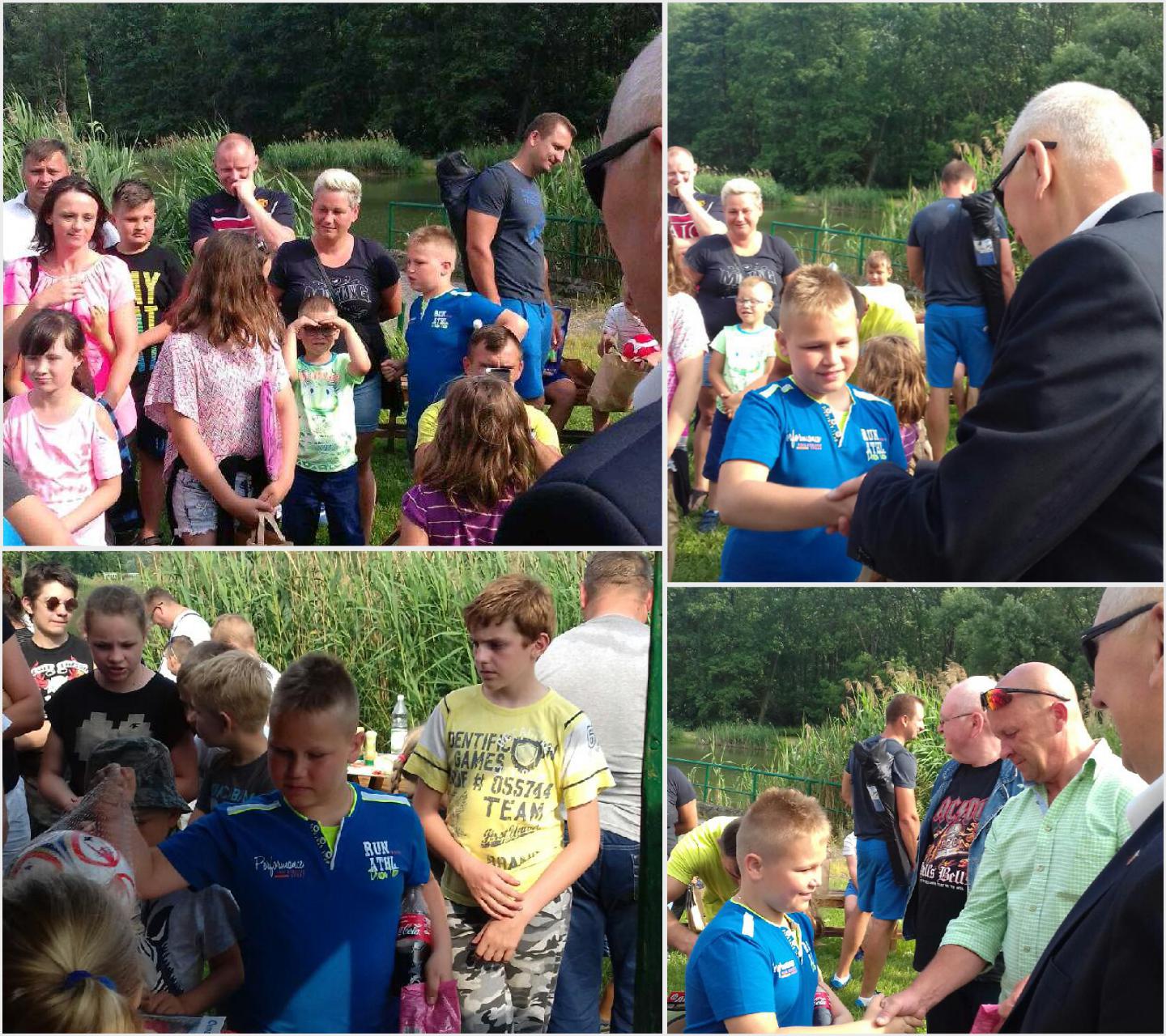 Każde dziecko otrzymało nagrodę oraz upominek, które wręczali: - Wójt gminy Moszczenica Marceli Piekarek - Prezes Stowarzyszenia Wędkarskiego Malik Tomasz Kapłoniak