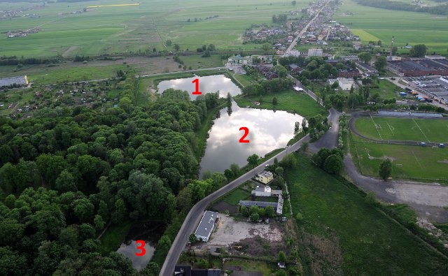 1. Najmłodszy ze zbiorników tzw. "BRODZIK" 2. Większy "Stary Alejny" 3. Połączony z nim mniejszy "Stary Alejny", która ma jeszcze zakole niewidoczne na tym zdjęciu.